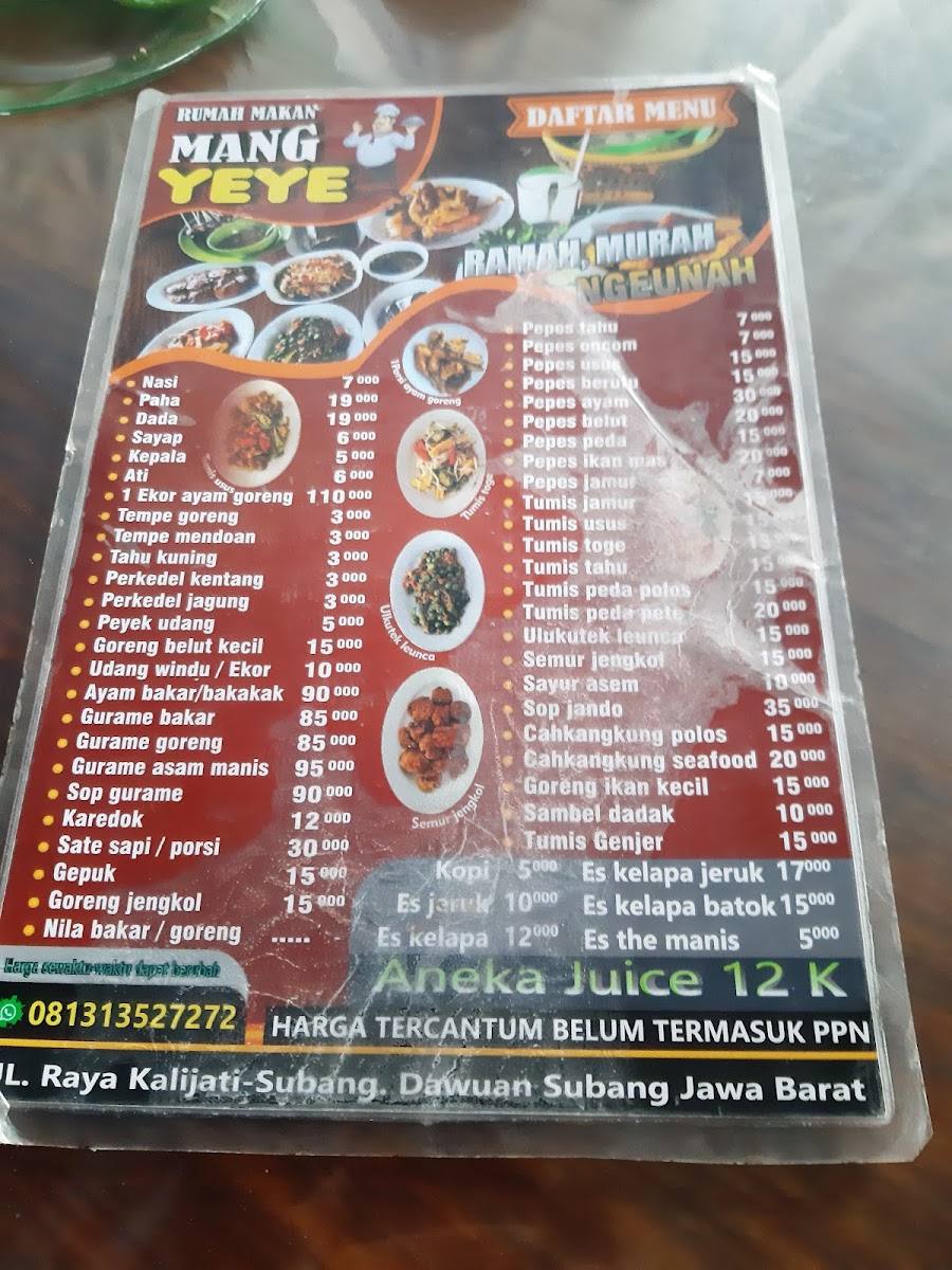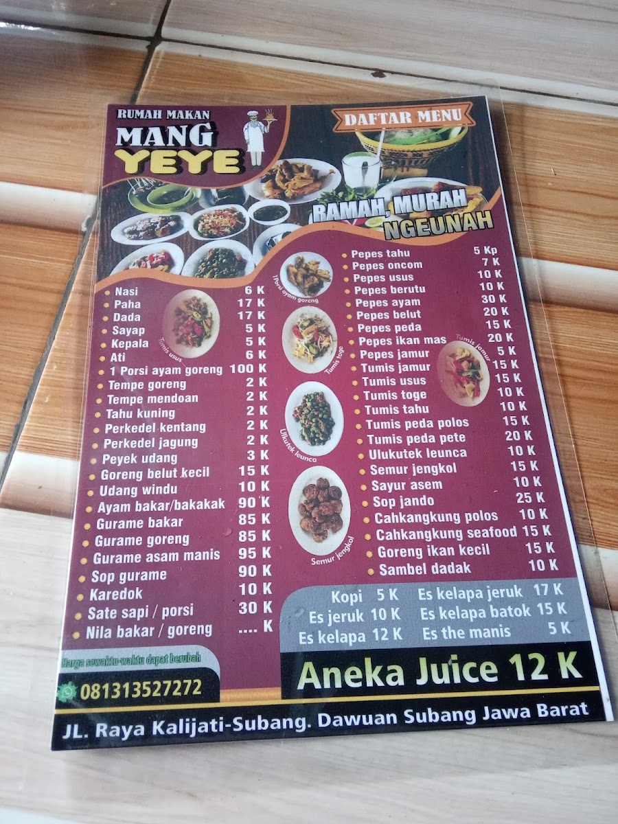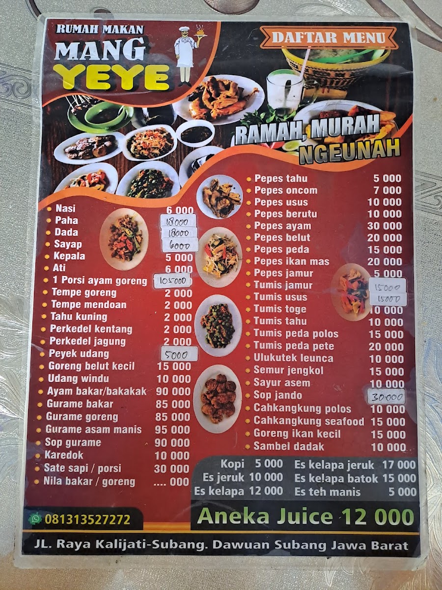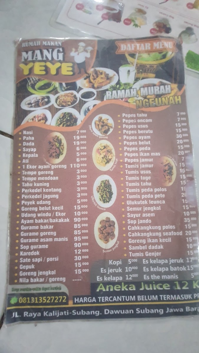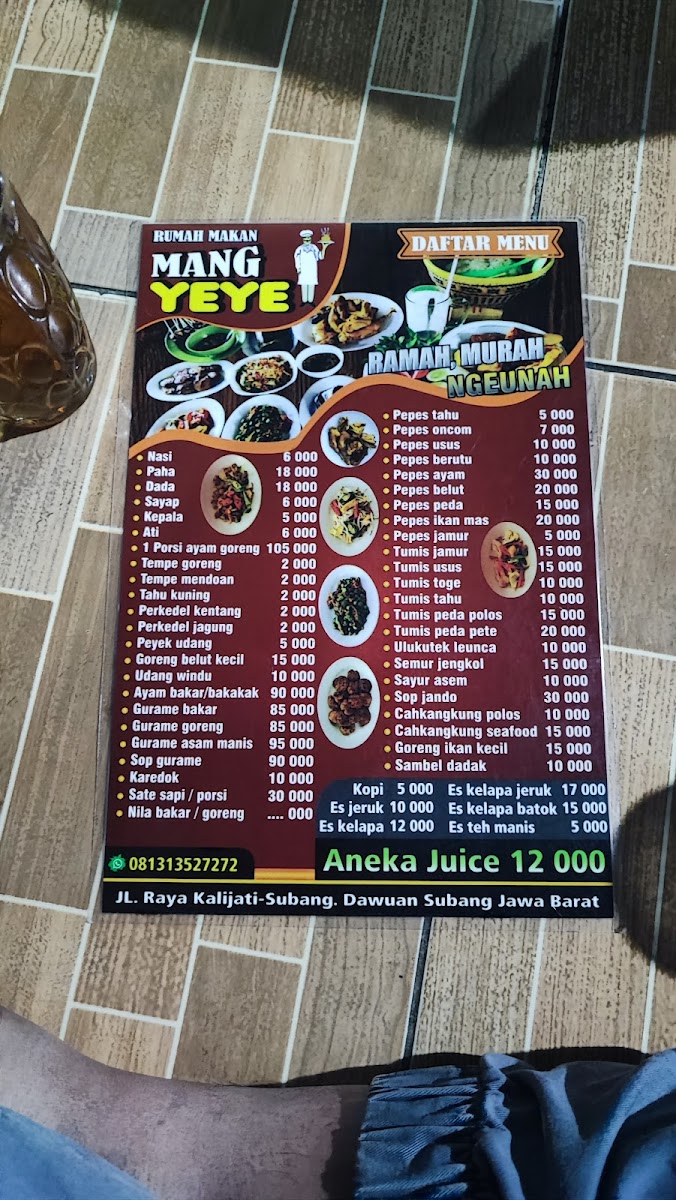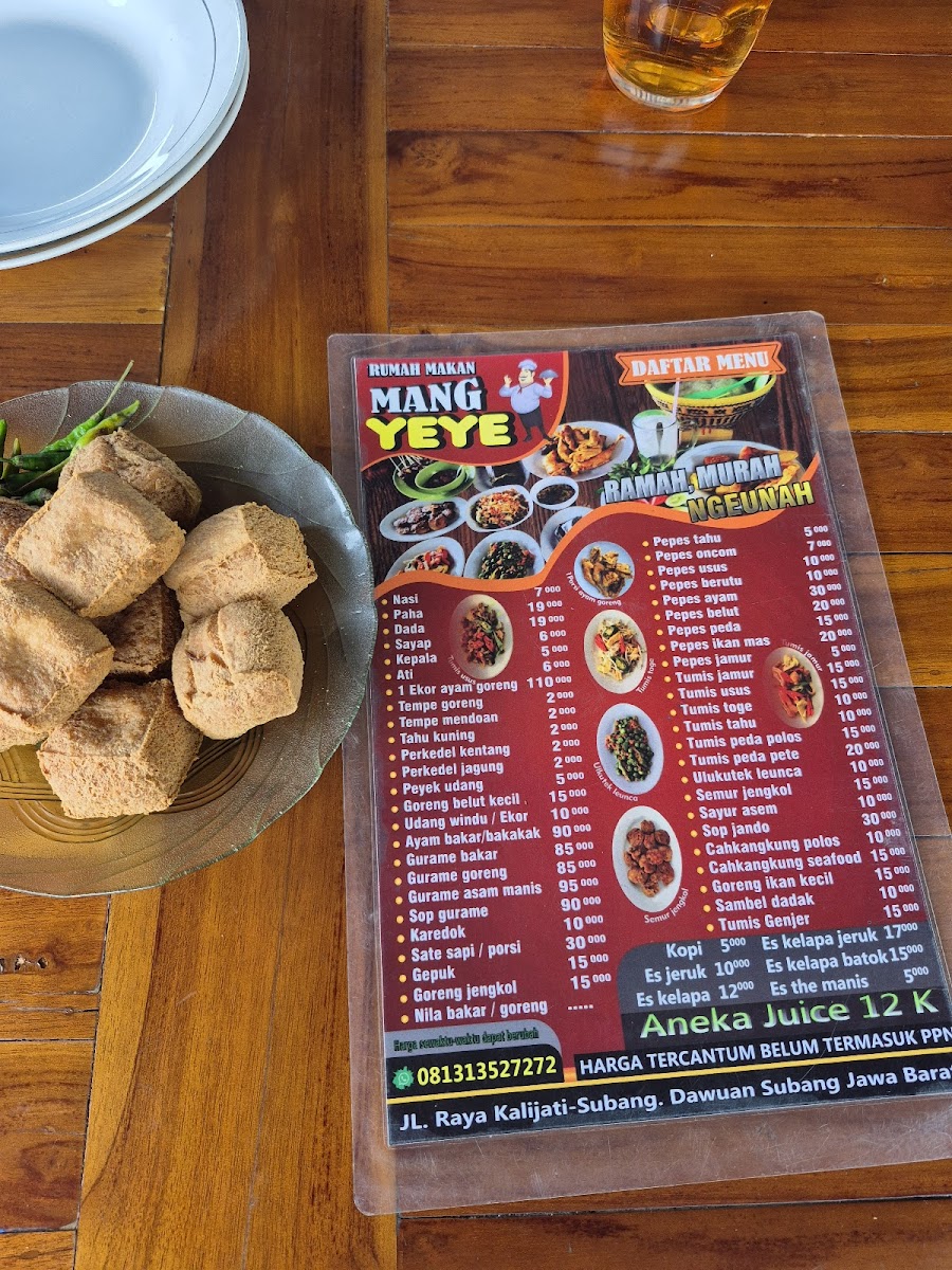 Welcome to RM. Mang Yeye, a gem located in the heart of Dawuan, Kabupaten Subang, where authentic culinary experiences await. This restaurant specializes in traditional Sudanese dishes, with customer favorites like Ayam Goreng and Tahu Sumedang taking center stage. The Ayam Goreng, known for its tender, juicy meat infused with spices, stands out despite its unique preparation, which leaves it less crispy yet incredibly flavorful.